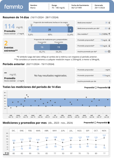 Mantené un historial organizado y detectá tendencias para un manejo más informado de tu salud metabólica.