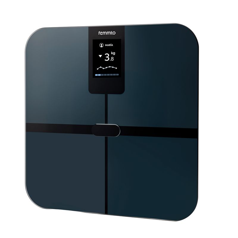 Nueva generación de balanzas inteligentes. Pantalla color HD, plataforma XL de 30x30cm y análisis corporal completo con visualización intuitiva.